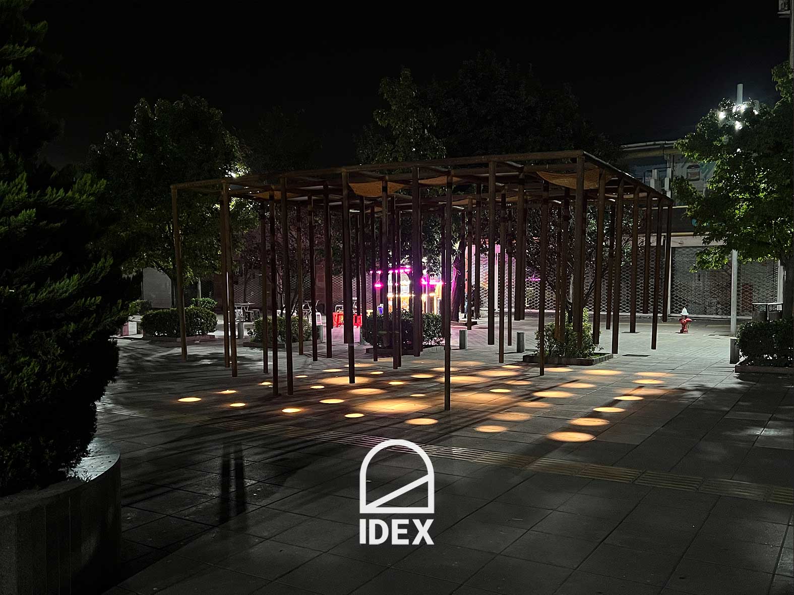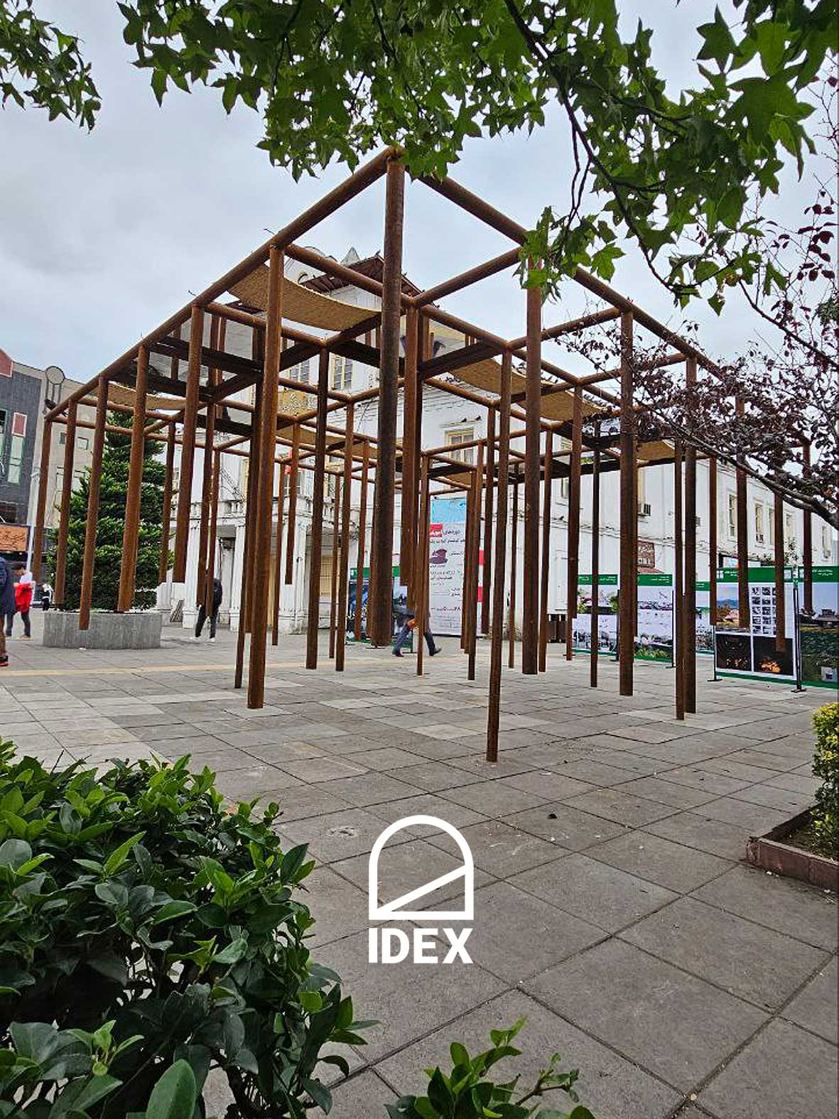 پاویون چایخانه ،به مثابه کاتلیستی شهری در بستر پیاده راه مرکزی شهر رشت طراحی و اجرا گردید . ایده اصلی آن بر گرفته از پرچین خانه های روستایی گیلان است . پرچین )رمش ) معماری گیلان همیشه به واسطه طبیعت آن در یک گفت و گو دیالکتیکی میان درون و بیرون شکل می گیرد. جاری شدن حیات