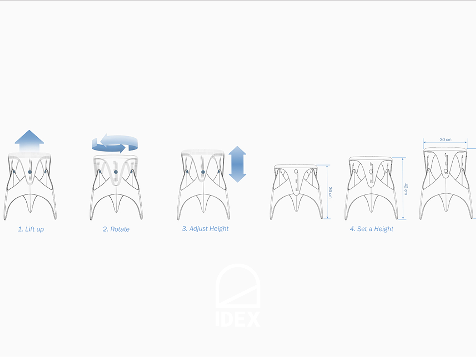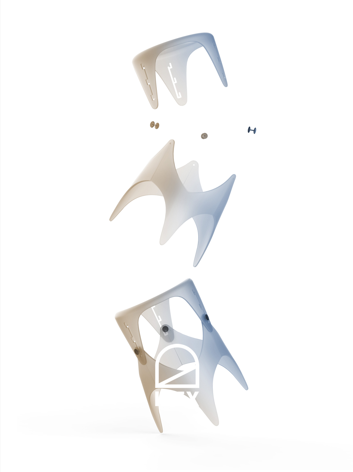 نیوان یک نشیمن سه پایه پایدار است که از پلاستیکهای بازیافتی ساخته شده و با هدف کاهش ضایعات پلاستیکی، در عین حفظ